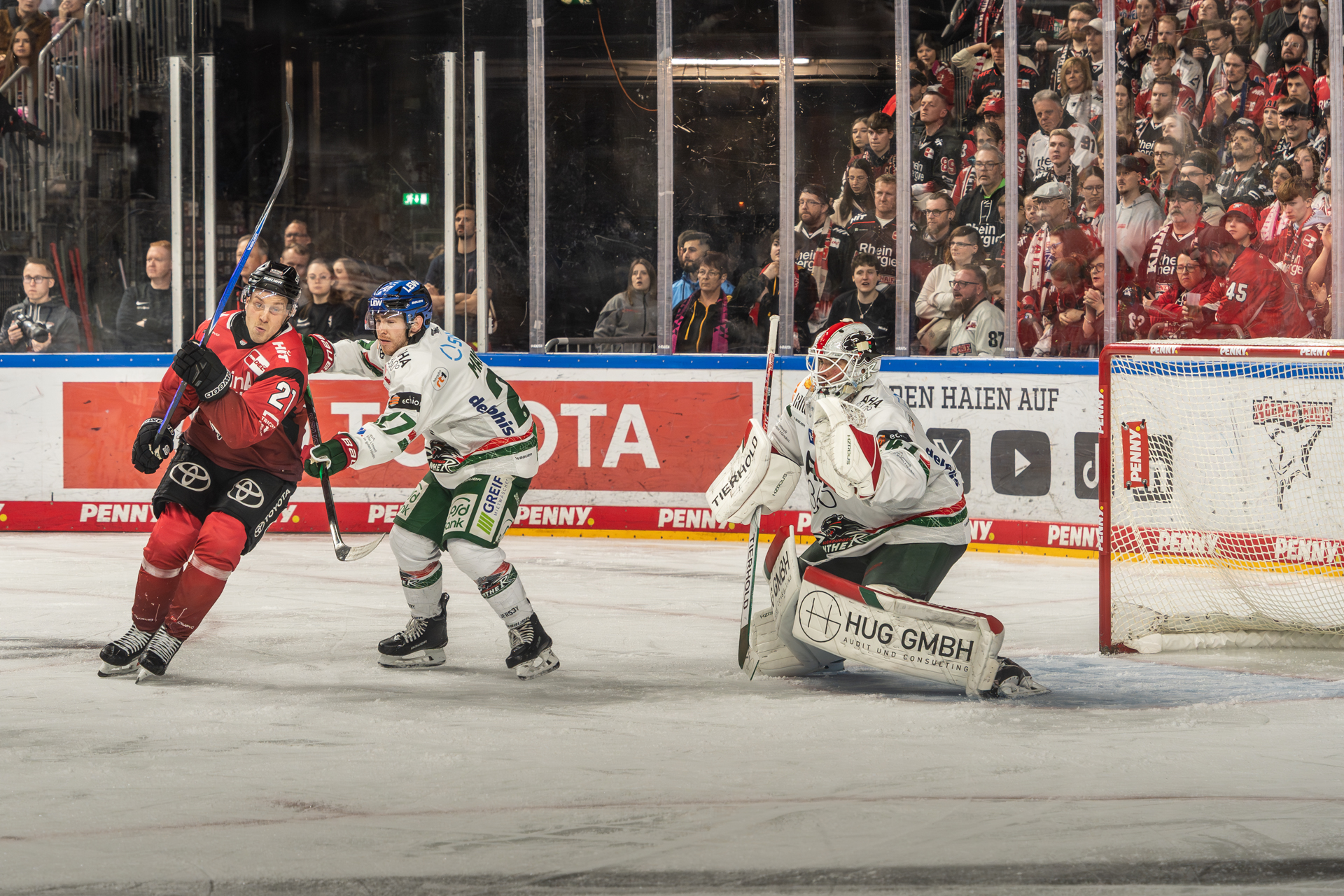 Die Kölner Haie überzeugten durch souveränes Angriffsspiel, taktische Akzente sowie herausragende Teamleistung und gewinnen das Spiel mit 6:2 Toren.